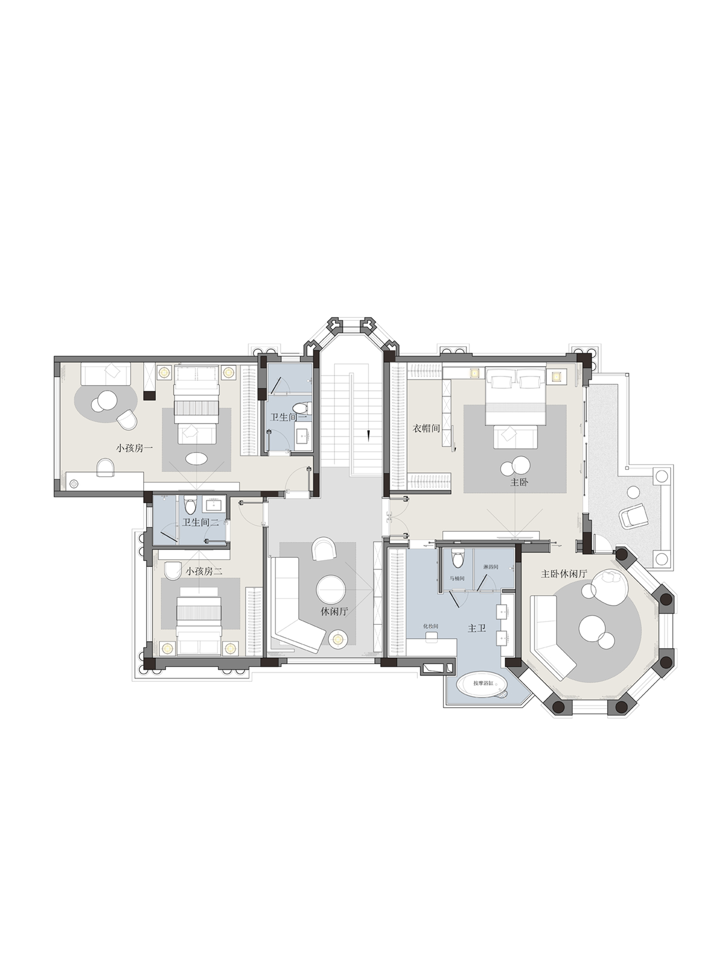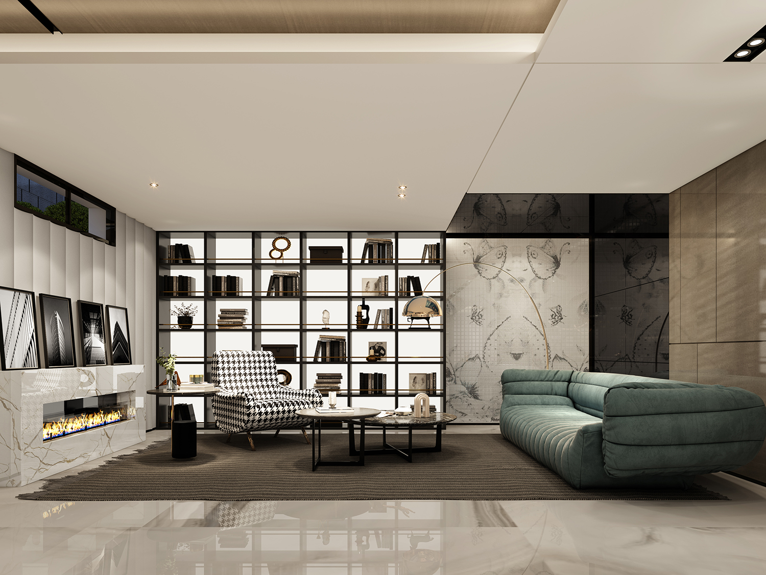 精致背景与吊灯交相辉映,富有层次感的色配彩搭独到的空间裁切、雅致的软装铺陈,都彰显着匠心与考究。