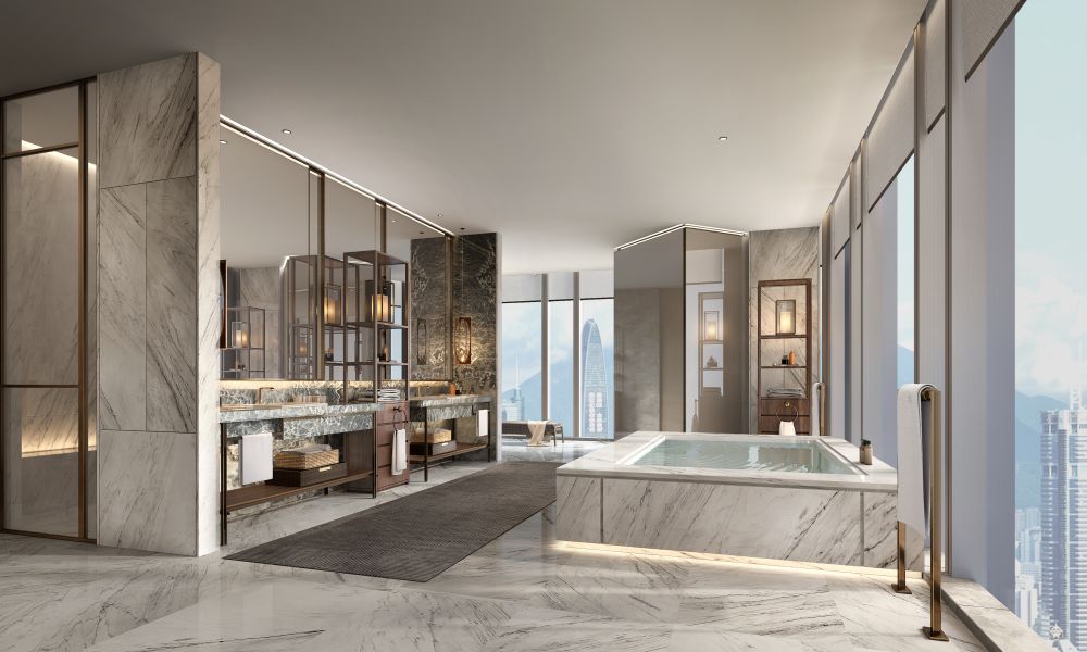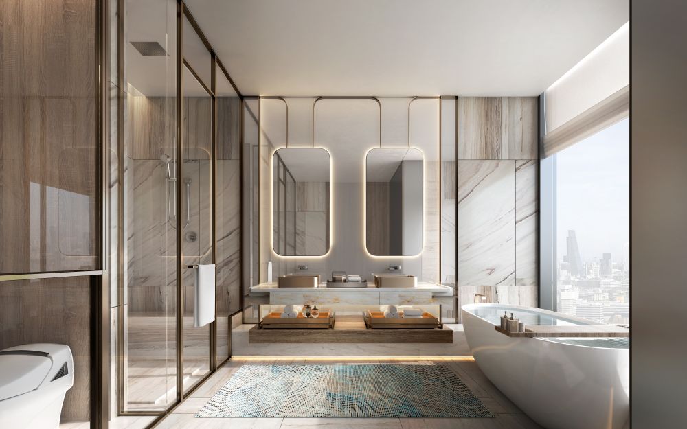 主卫以奢华的意大利白色大理石,不间断地从墙面延伸至地面,优雅而自信地呈现出居者独特的自我意识。