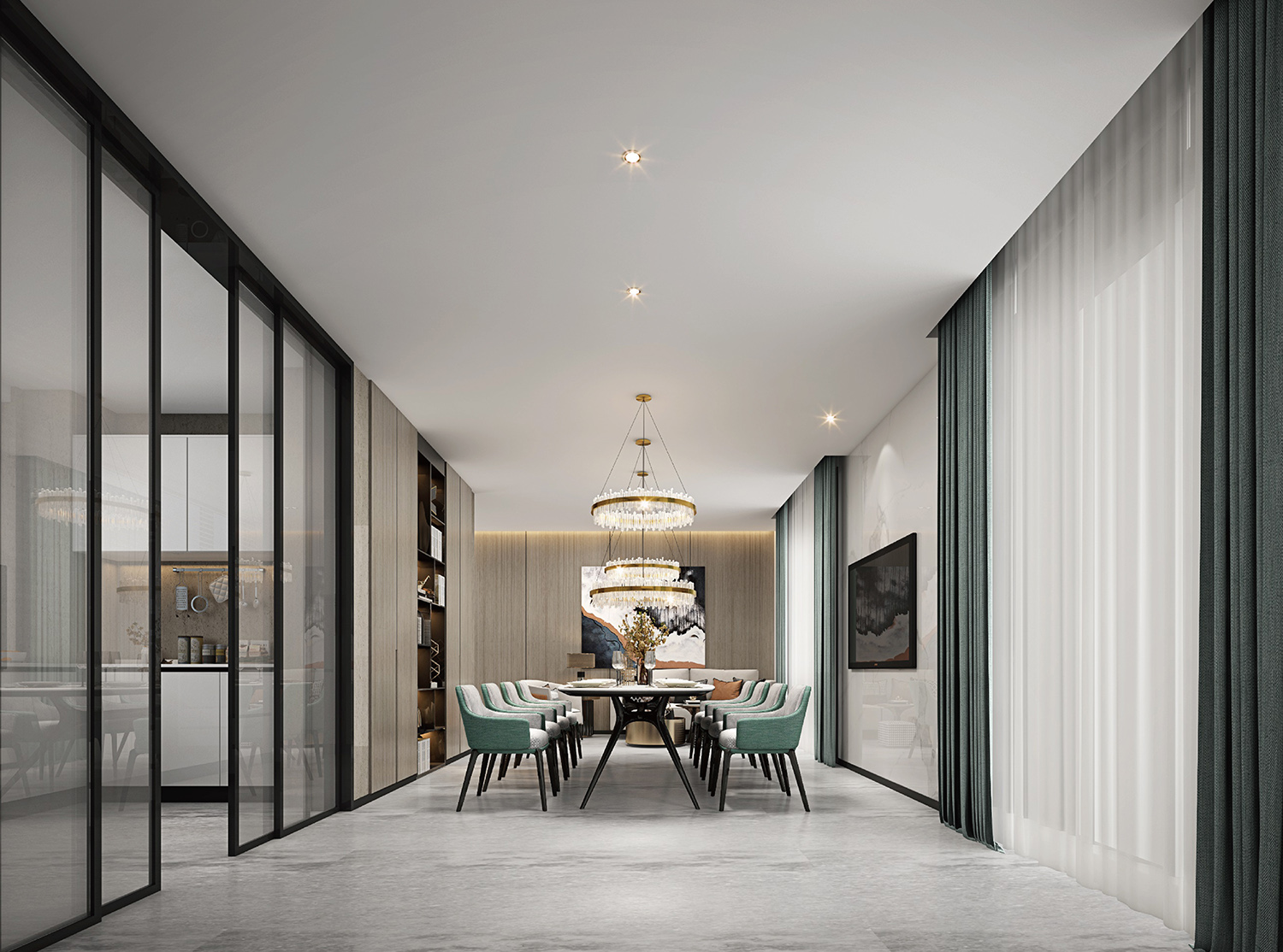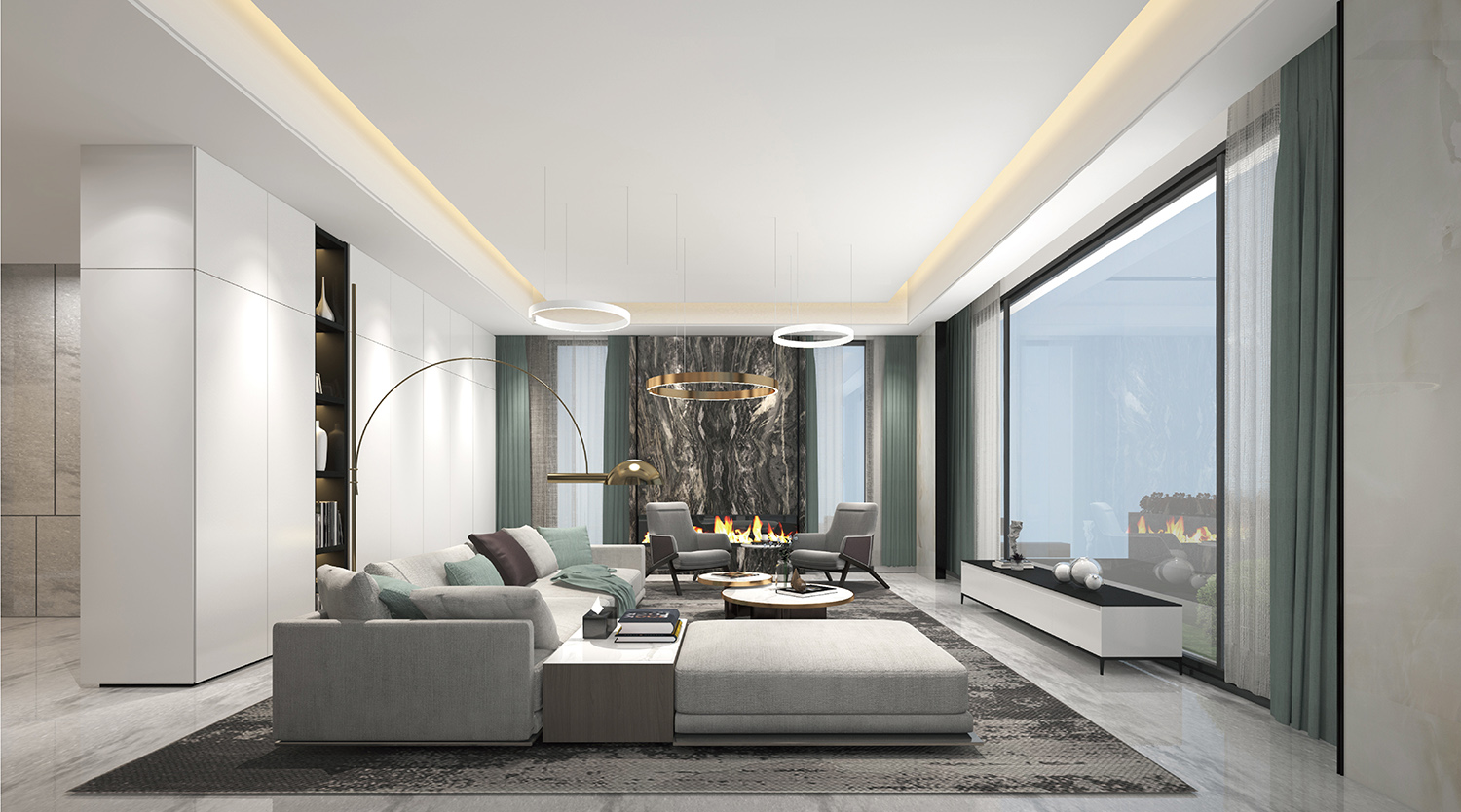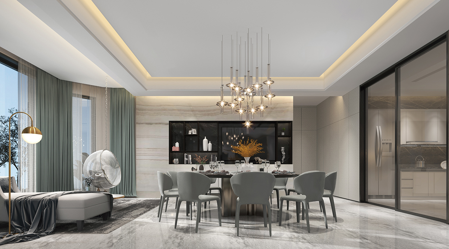 在阔绰的尺度里,要实现聚而不散,却又不乏合中有分,诚然这是对设计师谋篇布局的功力考核。利用空间框架的层叠与隐退关系,以自身独具的体量来划分层次,增添气场,辅以大块面材质顺畅的交织过渡,因势赋形,突显整体。